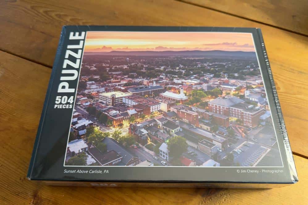 Love puzzles? This 504-piece puzzle is sure to be a ton of fun to put together and is also a great gift! This puzzle is a photo of sunset over historic Carlisle, PA, by Jim Cheney, creator of UncoveringPA.com.